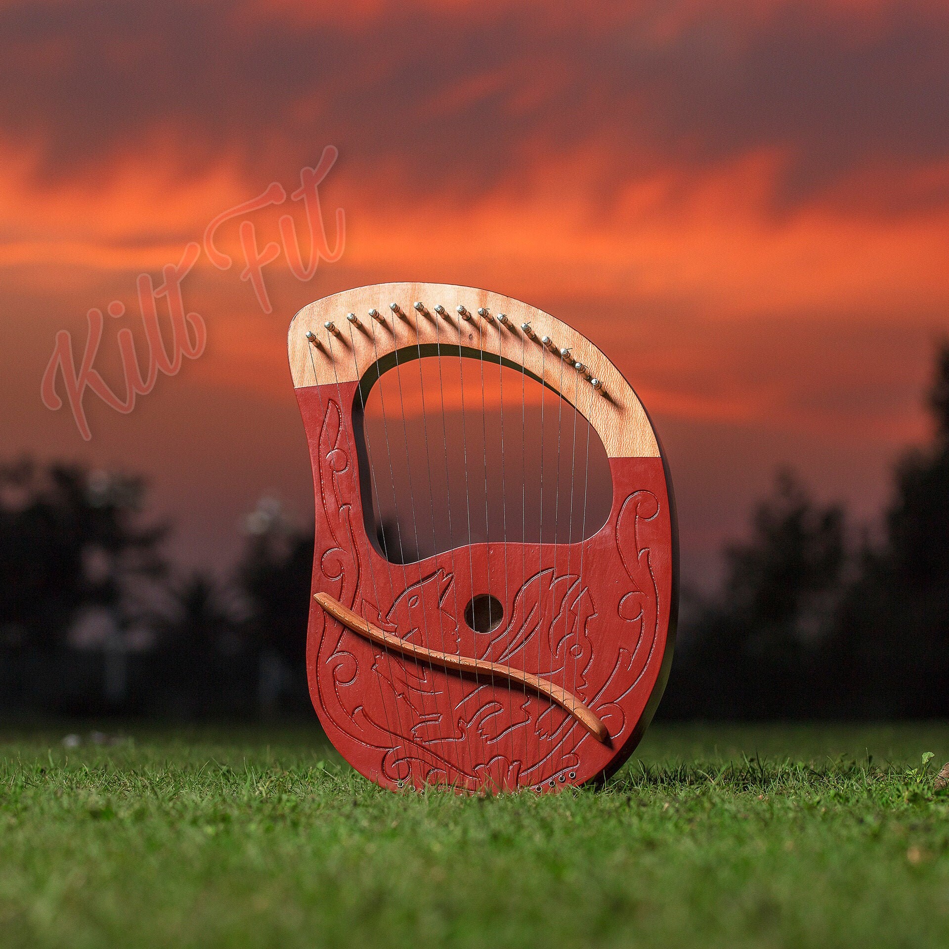 Lyre Harp 15 Metal Strings Dragon Design Rosewood Lyre Harp Etsy